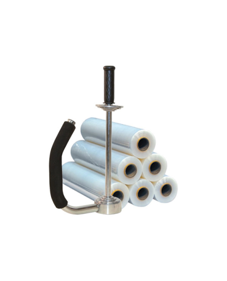 Håndfilmdispenser i kraftig udførelse ideel for håndvikling med håndfilm i bredde 450 eller 500mm. Lille investering for at kunne udføre en god palleomvikling, men man bliver let rundtasset af at udfører processen, så har du større behov end 5 paller per dag anbefaler vi at du kigger på at inveser i en vikler tilpasset det behov du har.