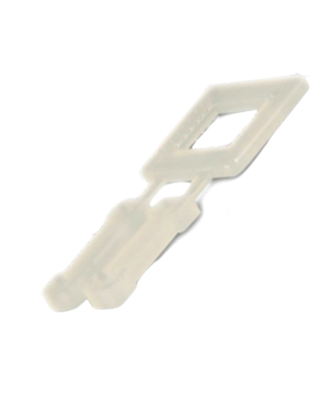Hvide plastspænder for 12-13mm PP Polypropylen omsnøringsbånd. 5×1000 stk. per pose i karton med 5000 stk. Typisk pakket i kasser, men kan også være pakket i poser. Ved omsnøring har man ca. 50-60 procent af båndets styrke i samlingen. Plastspænder kan anvendes til omsnørning uden brug af værktøj, eller sammen med opstrammer P173, H21 eller H23.