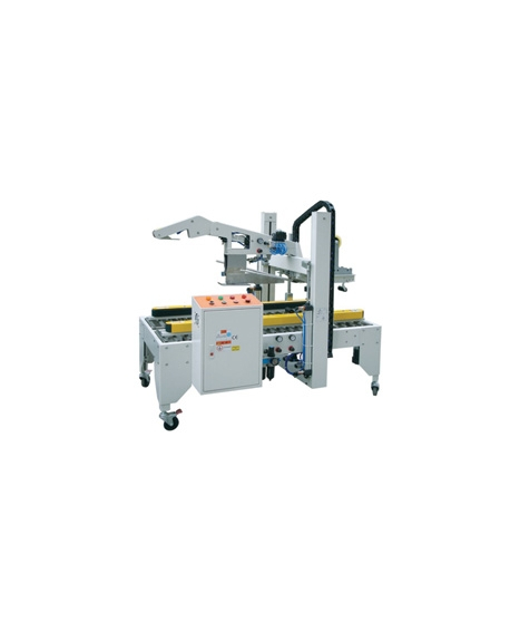 En automatiseret maskine, der folder de øverste klapper og derefter forsegler top og bund med tape. Sensoren installeret oven på maskinen identificerer en indgående karton, og et justerbart lufttryk giver styr på foldning af de øverste klapper. En meget nem at betjene og vedligeholde leveres af elektroniske boksens styresystem.