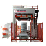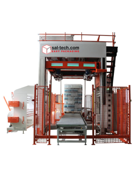 En maskine designet til automatisk pakning af paller med strækhætte. Strækhætten er en plastfolie, der strækkes over pallen og varmeforsegles, hvilket giver en sikker og tæt pakke til transport og opbevaring.