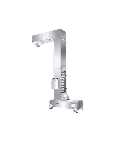 Kop elevator Transportør for fødning af produkt optil kombinations vægt anbragt over vertikal, fylde, forme og svejse posemaskine. VFFS elevatoren er perfekt til at transportere granualt, bulk emner i fødevare industrien, hardware og lignende produkter.
